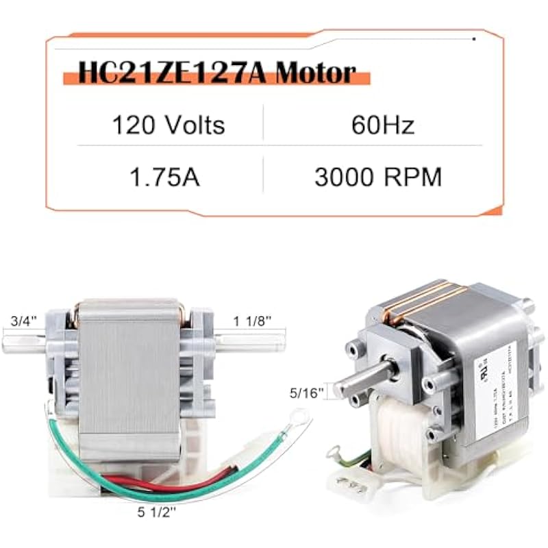 - ► Specifications – Double Shafted 1 1/8” x 5/16”Dia and 3/4” x 5/16”Dia. 120V, 60Hz, 1.75A, 3000 RPM, 5 1/2” Ground Wire. Replacement Draft Inducer Motor HC21ZE127A Only.