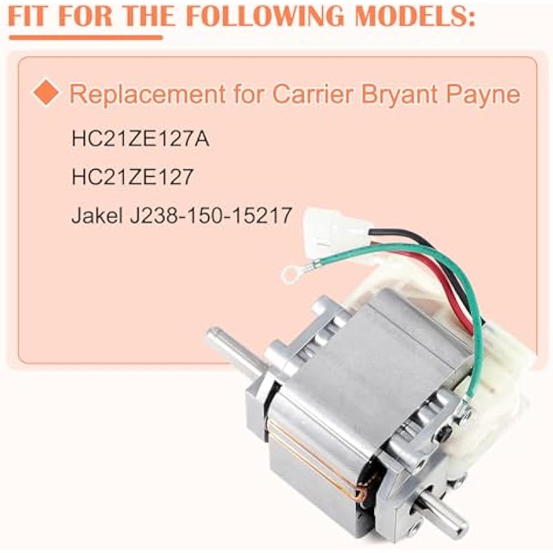 - ► Compatible Models – Replacement for Carrier, Bryant, Payne, HC21ZE127A, HC21ZE127, Jakel J238-150-15217 Exhaust Fan Motor.