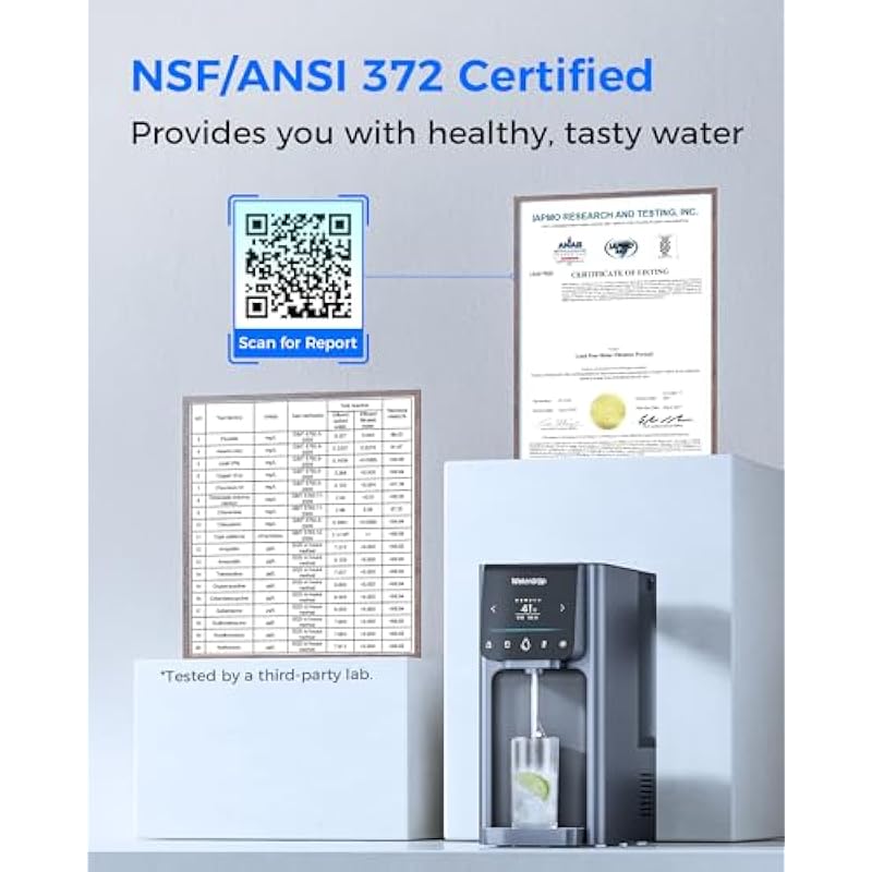 - 𝐀𝐥𝐥-𝐢𝐧-𝐎𝐧𝐞 𝐑𝐞𝐯𝐞𝐫𝐬𝐞 𝐎𝐬𝐦𝐨𝐬𝐢𝐬 𝐒𝐲𝐬𝐭𝐞𝐦: This hot and cold water dispenser is ideal for families seeking convenient access to water at different temperatures. It has been certified against NSF/ANSI 372 for lead-free materials and has passed the SGS testing