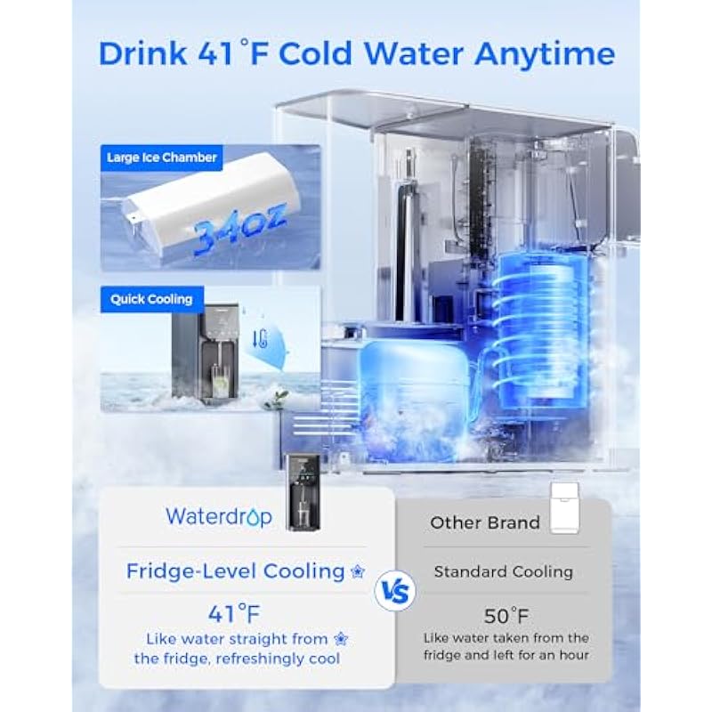 - 𝟔 𝐓𝐞𝐦𝐩𝐞𝐫𝐚𝐭𝐮𝐫𝐞 𝐎𝐩𝐭𝐢𝐨𝐧𝐬: Equipped with a high-quality cooling system found in refrigerators, this water dispenser can deliver cold water as low as 41℉. Its temperature adjustment range of 41℉-203℉ also makes it an excellent choice for making tea, coffee, or other beverages