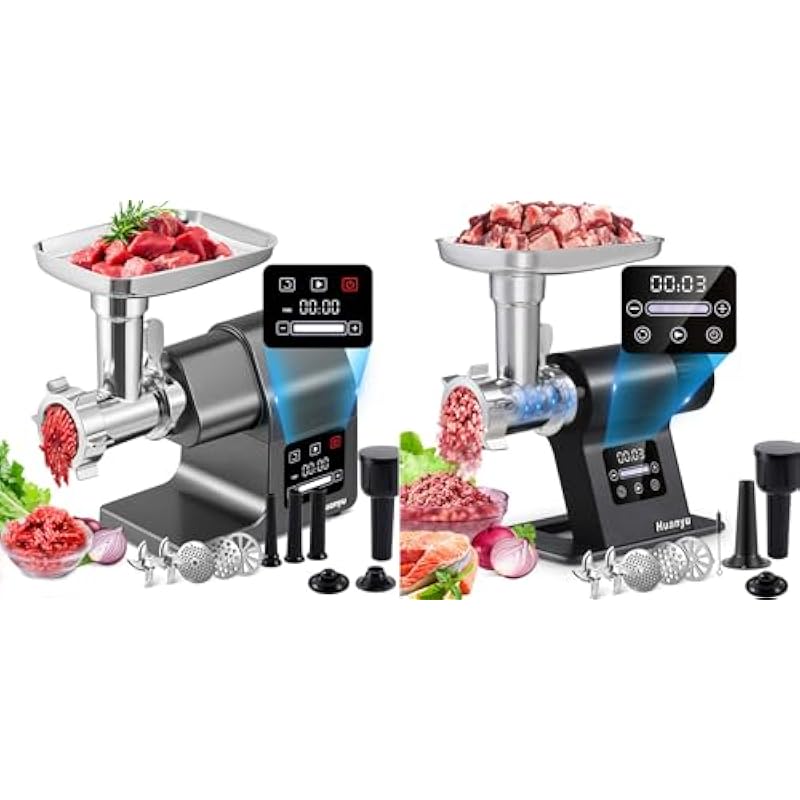 Huanyu Electric Meat Grinder 2000W Max Power Heavy Duty with Touchscreen and Huanyu 2000W Heavy Duty Electric Meat Grinder for Bone and Game Meat Bundle