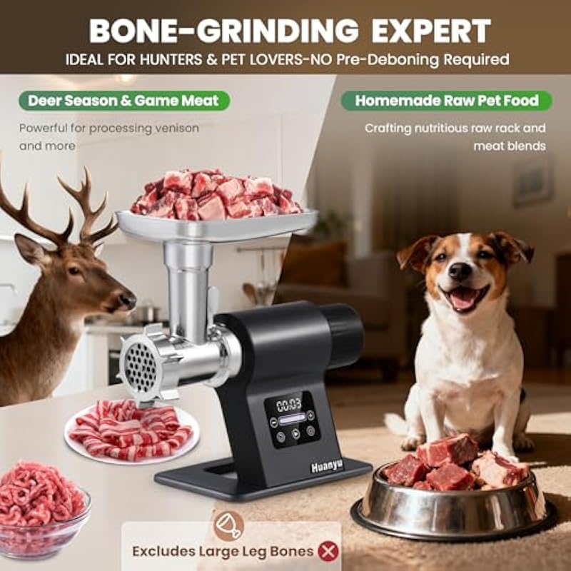 - [Engineered for bone grinding] Designed to handle a variety of meats and bones (excluding large leg bones). This meat grinder electric process chicken frames, poultry, and soft bones to create nutrient-rich homemade pet food you trust or incorporate calcium into your recipes, without pre-deboning