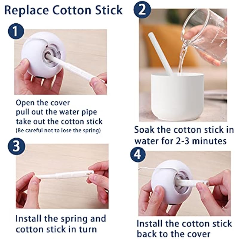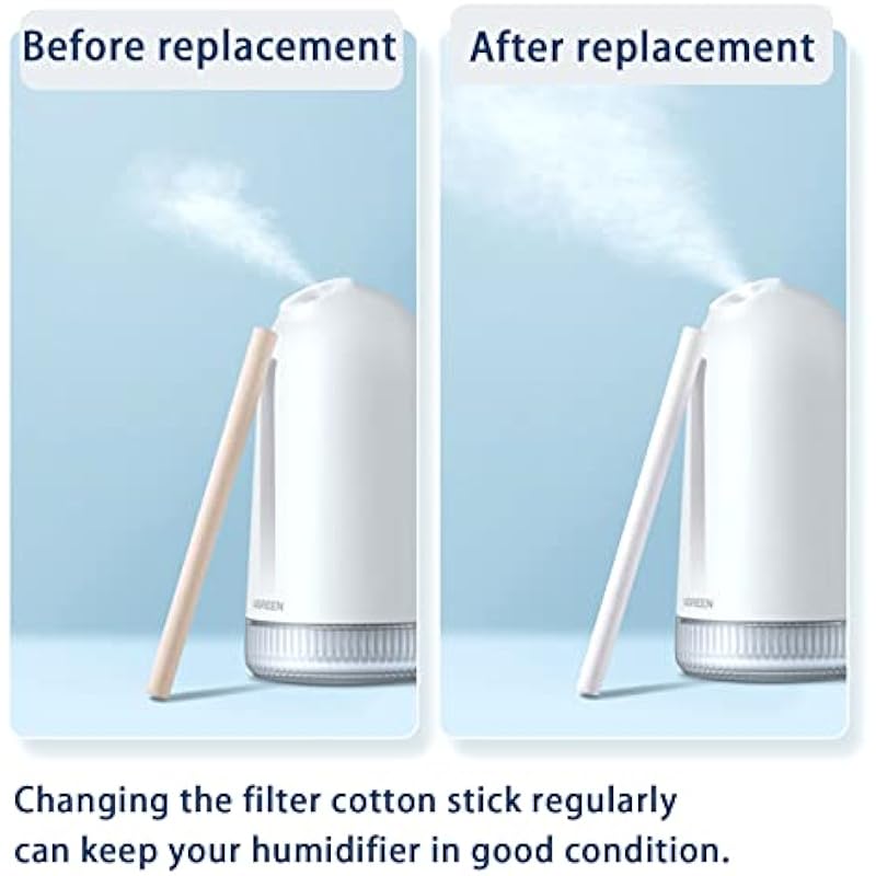 - Tip: before using the new cotton cane filter, soak in water for about 2 minutes, wait until the cotton stick is completely moist, and then put it in the humidifier.