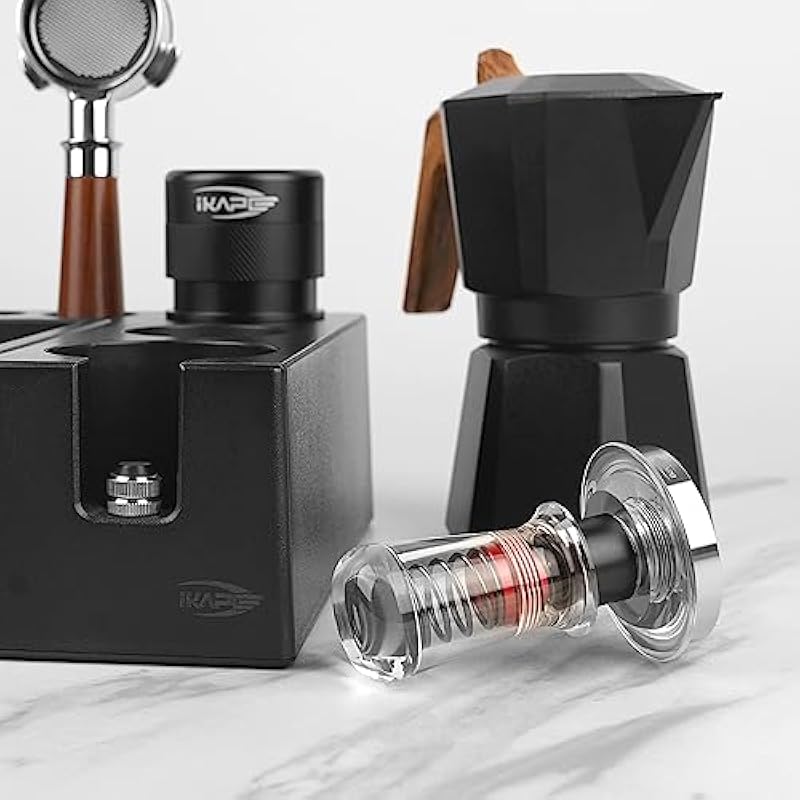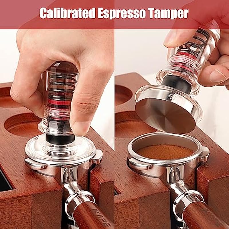 - Unique Transparent Acrylic Handle Design – The tamper features a unique transparent acrylic handle design that not only offers ergonomic comfort but also provides a visual spectacle. By witnessing the process of the spring compressing, you’ll experience the captivating moment of perfect coffee extraction—a feast for the eyes