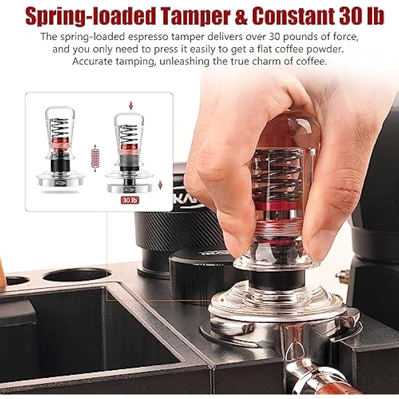 - Achieve Perfect Espresso Every Time – The transparent acrylic handle tamper is the perfect choice for coffee enthusiasts. Calibrated with a spring-loaded mechanism, this tamper exerts a consistent pressure of over 30 pounds, ensuring an even and finely ground coffee puck for an exceptional extraction and a more flavorful espresso