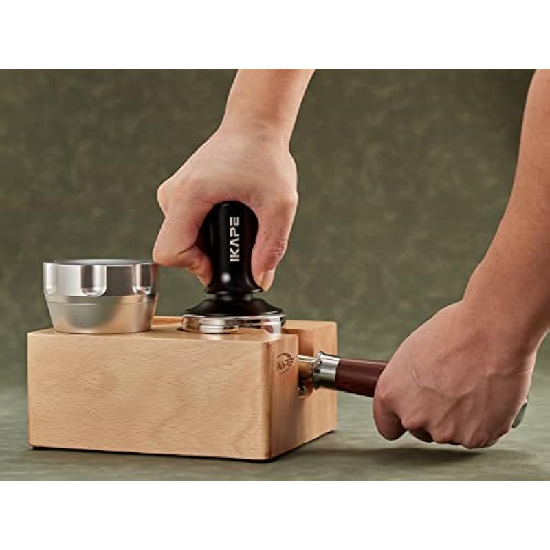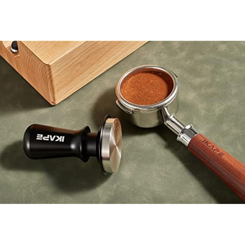 IKAPE 51MM Espresso Tamper Kit 3 IN 1 Black, Coffee Tamper, Gravity Espresso Distributor, Wooden Coffee Tamper Station