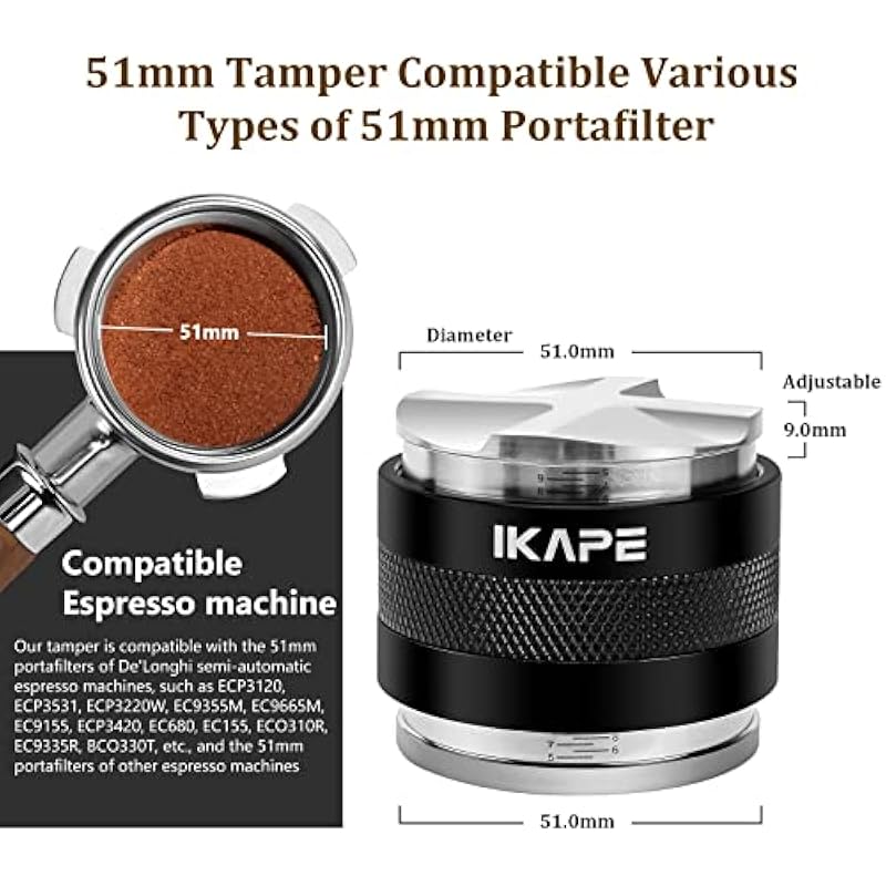 IKAPE 51MM Espresso Tamper Kit 3 in 1 Black, Including Coffee Tamper, Espresso Distributor, Espresso Knock Box & Coffee Organizer Box 2 IN 1