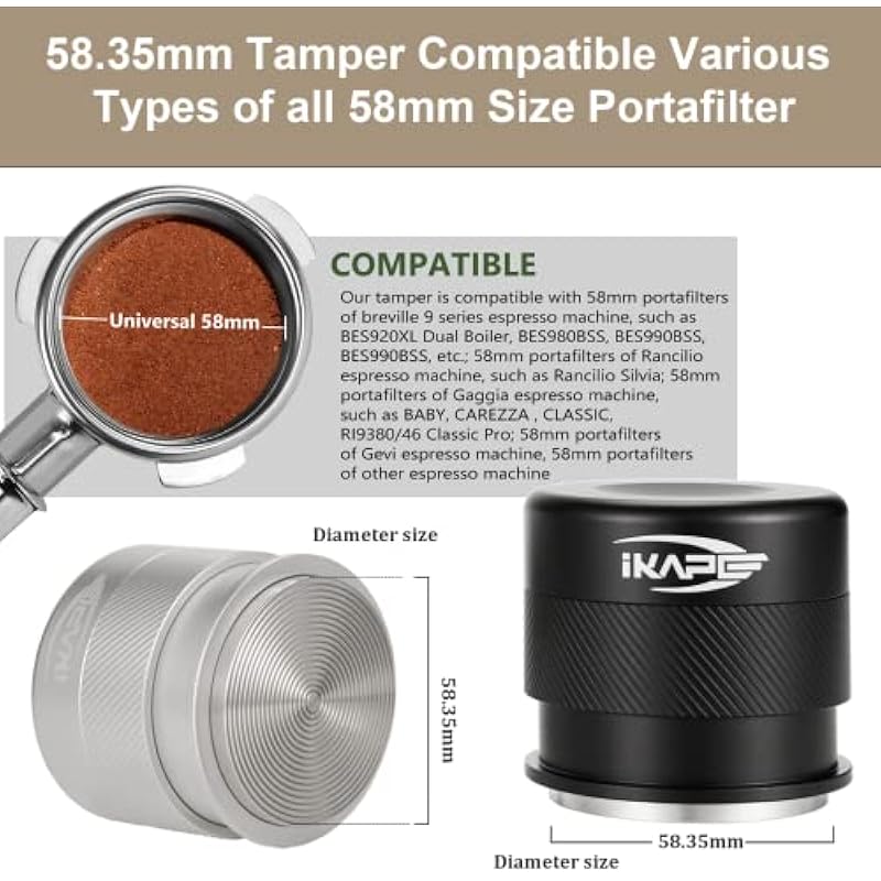 IKAPE 58MM Espresso Tamper Kit 3 in 1 Black, Including Coffee Tamper, Espresso Distributor, Espresso Knock Box & Coffee Organizer Box 2 IN 1