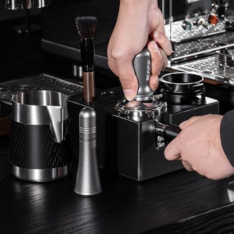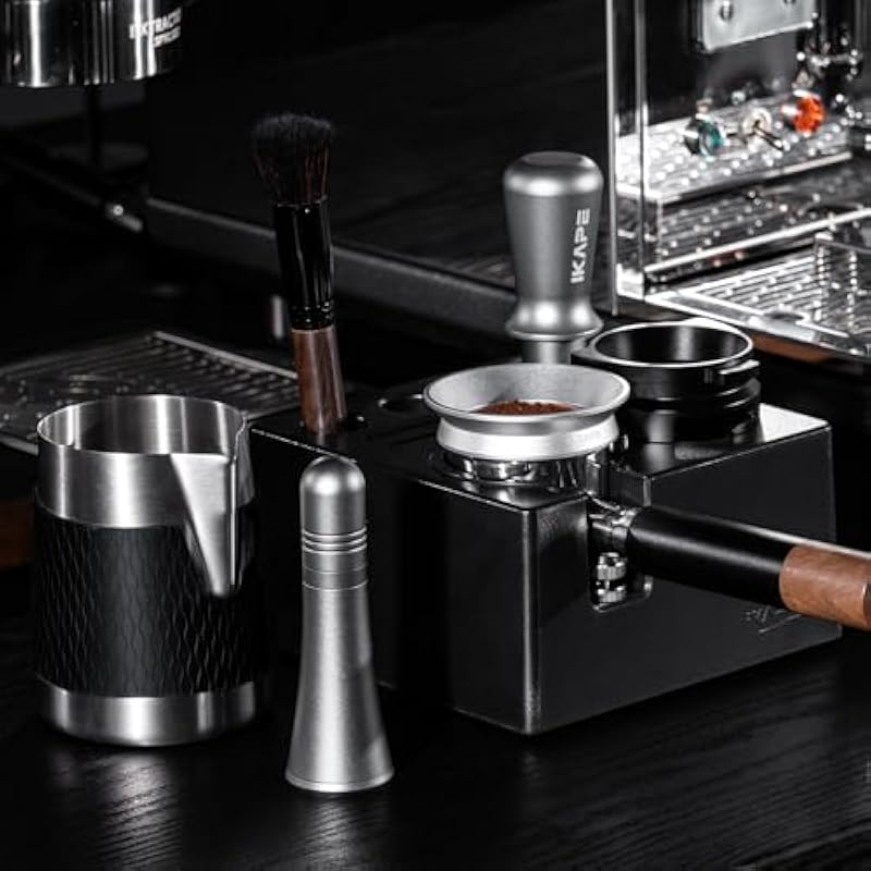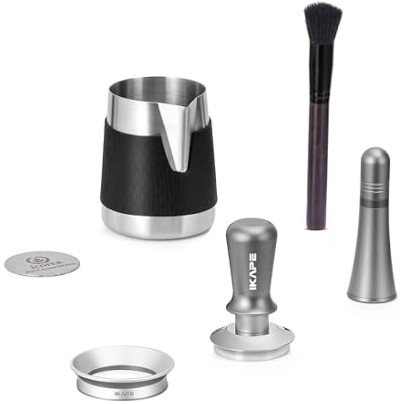 IKAPE 58MM Espresso Tamper Kit 6 in 1, Coffee Tamper, WDT Tool, Magnetic Dosing Funnel, Puck Screen, Milk Pitcher, Cleaning Brush