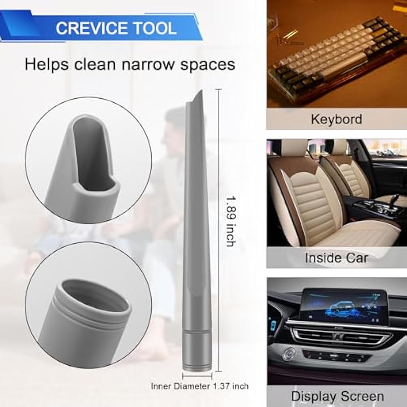 - 【Corner Cleaning Tool】This slim 14″ crevice tool is great for cleaning tight spaces, between couch cushions, and in hard-to-reach areas.