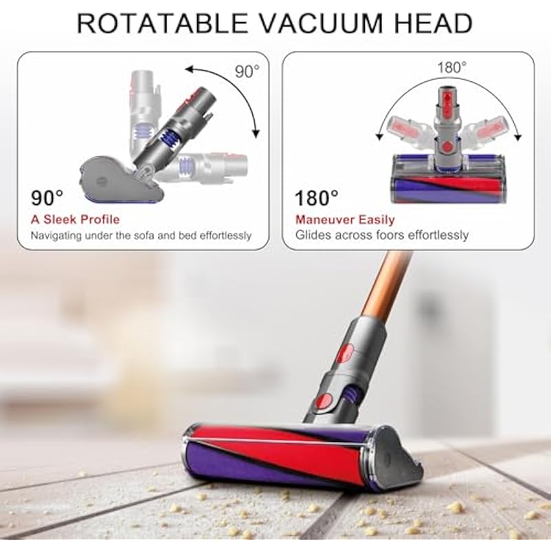 - 【PREMIUM SOFT ROLLER HEAD】The soft roller cleaning head for Dyson is encased in soft woven nylon. The fibers capture large debris, enabling it to pass beneath the cleaner head and into the vacuum while ensuring a tight seal with the floor