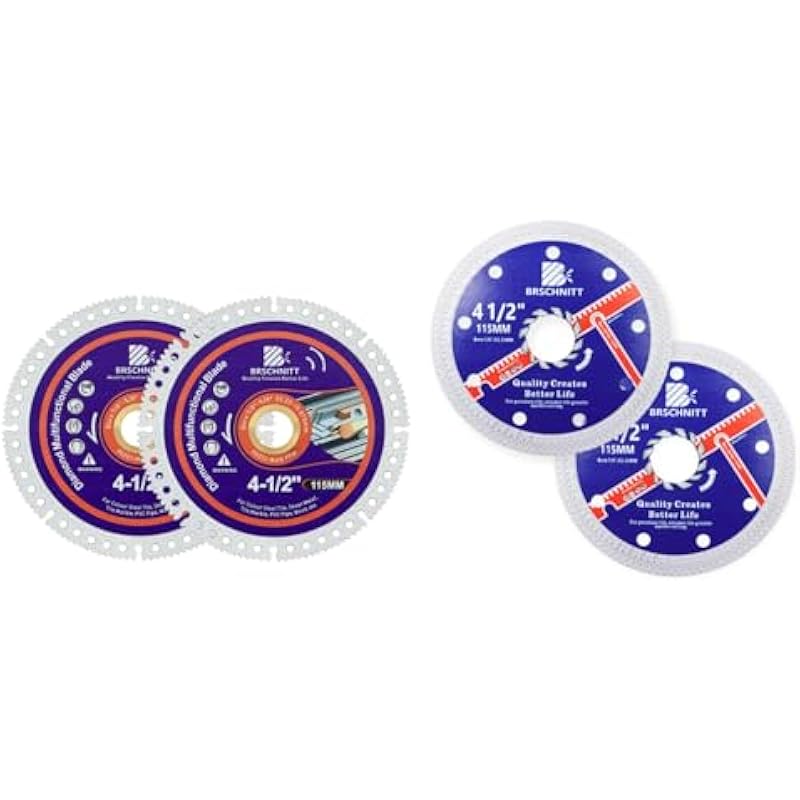 - Super Thin Diamond Porcelain Saw Blade with X Teeth,BRSCHNITT 2pcs 4-1/2 Inch (115mm) x Arbor 7/8″ Angle Grinder Diamond Cutting Disc for Dry/Wet Cutting Porcelain Tile Ceramic Marble Granite
