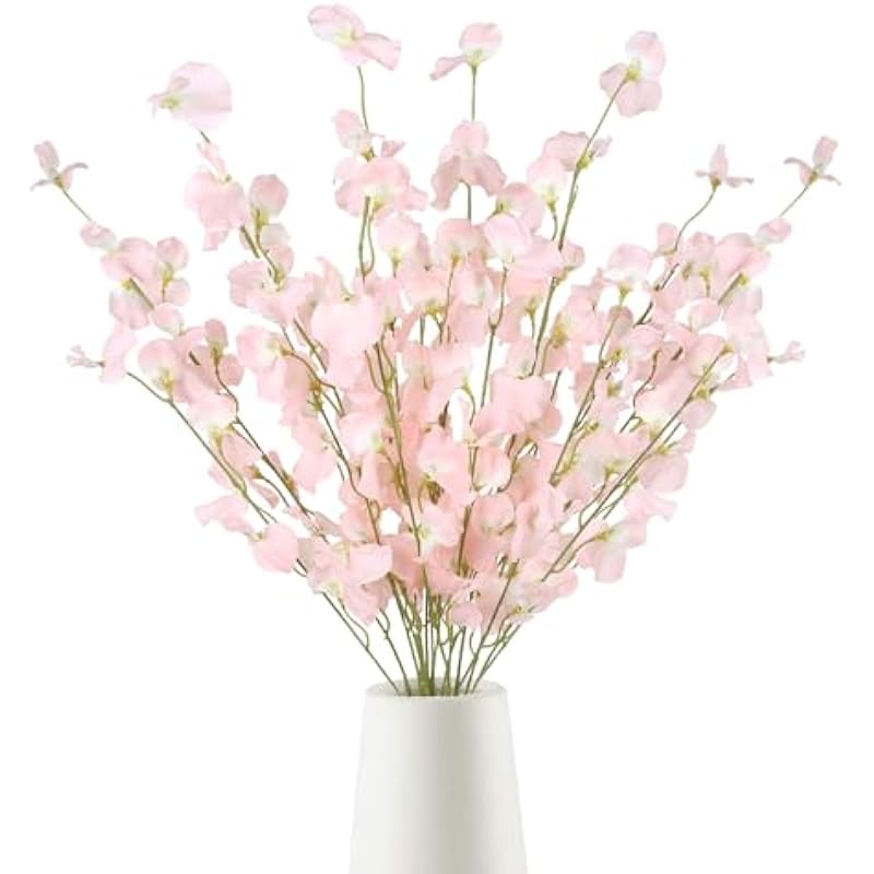 - Package and Size:You will receive 8 pcs artificial sweet pea flowers.The total height of each faux flower is about 100 cm/39.4 inches.Silk flowers have long flexible stems that are very easy to bend and cut to fit vases of different heights