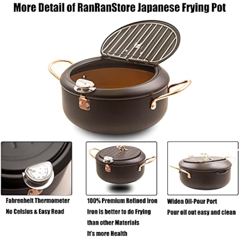 Japanese Tempura Deep Fryer Pot 3.5L- Fahrenheit Thermometer, Nonstick Coating, Easy Clean, Heatup Fast, Big Exquisite Black Oil Fryer 10inch