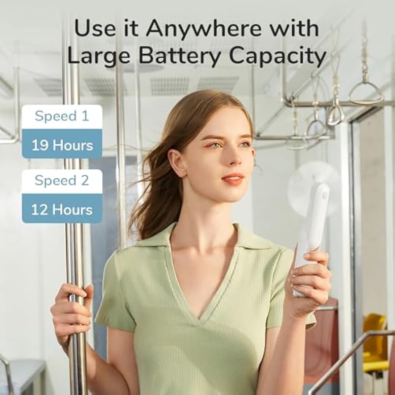 - 【Key Features of Handheld Fan LIFE4】1. LED Display; 2. Powerful Wind with 12-blades and upgraded moto; 3. Up to 13 Hours cooling time; 4. Featuring with 5 speeds.