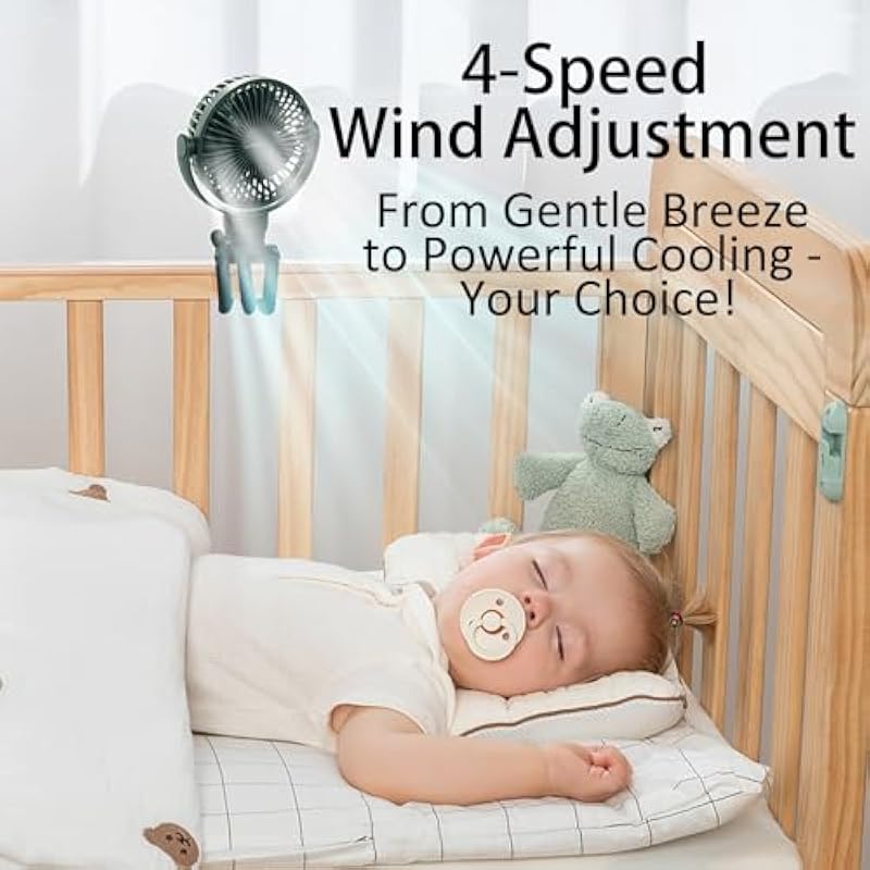 - 4-Speed Wind Adjustment:Choose from gentle breezes to powerful airflow with just a click. Perfect for keeping babies comfortable in any weather, day or night.