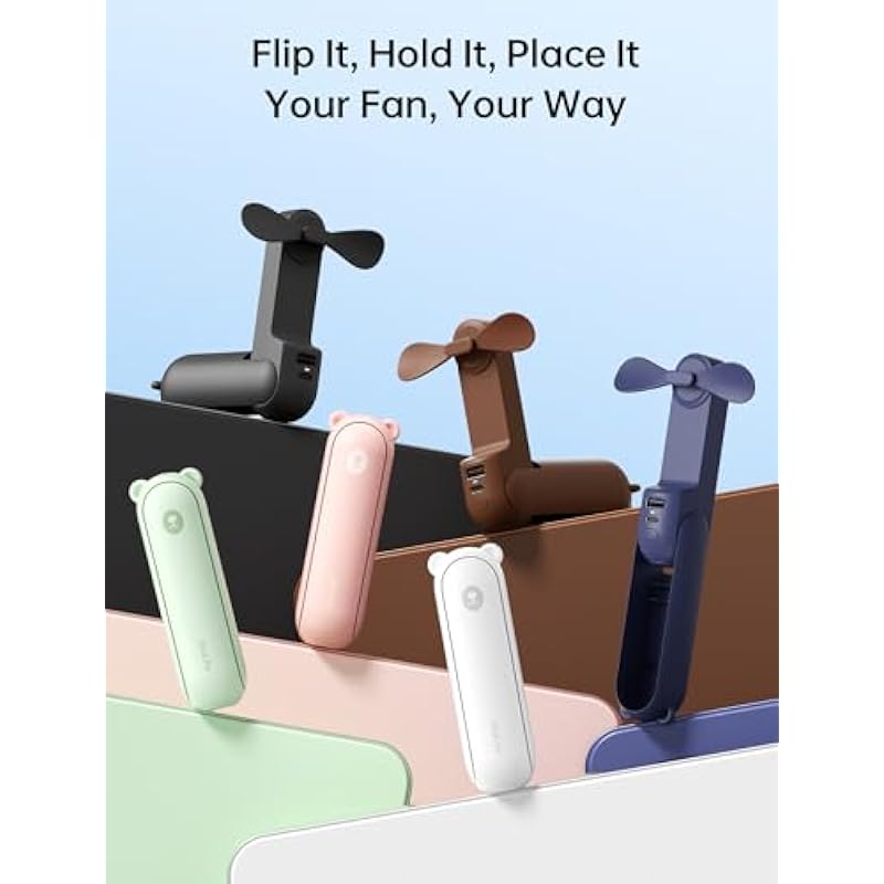 - 3-Stage Transformable Fan: 3-stage transformable design allows for easy storage with hidden blades, making it compact enough to carry in your pocket; Use it as a handheld fan at 180° fold or as a desktop fan at 270° fold for added versatility