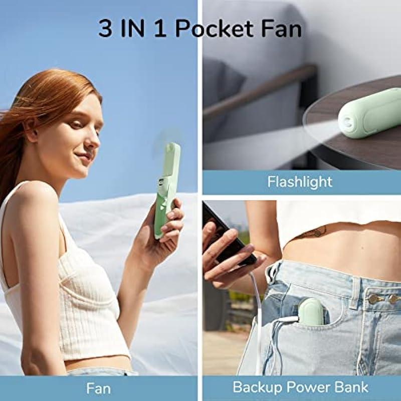 - 【A Palm-sized Backup Charger】Designed in a unique palm-sized form, the F8 portable fan easily fits into any bag for on-the-go convenience. Doubling as a backup power bank, it keeps your devices charged when needed, making it your travel and summer essentials.