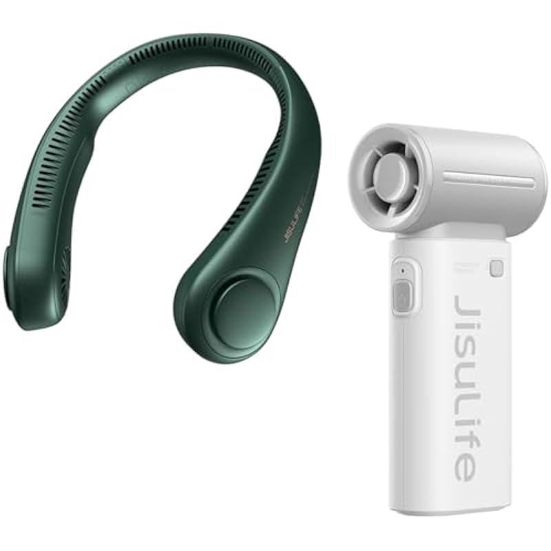JISULIFE Neck Fan 4000 mAh Hands Free Bladeless Fan+Portable Handheld Turbo Fan[12H Max Cooling Time] Pocket Fan with 5 Speeds