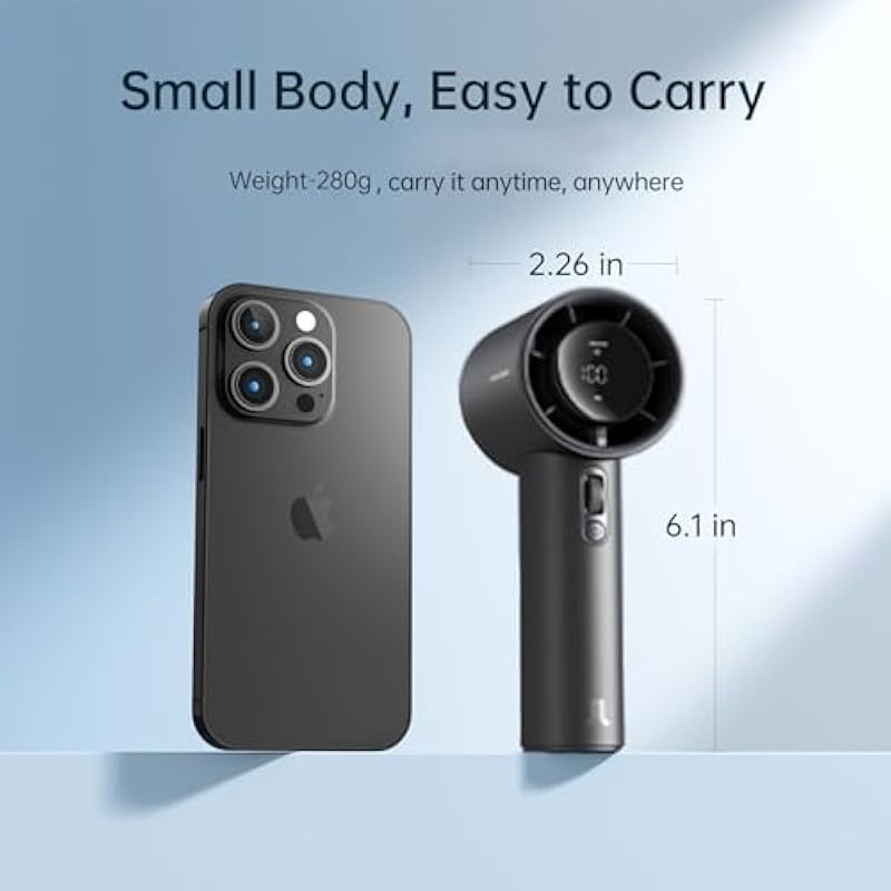 - Smart LED Display: The display screen of the portable fan(Weight: 280g) for travel shows the current wind speed and remaining battery power, keeping you cool during outdoor travel. This mini personal fan is essential for hot weather.