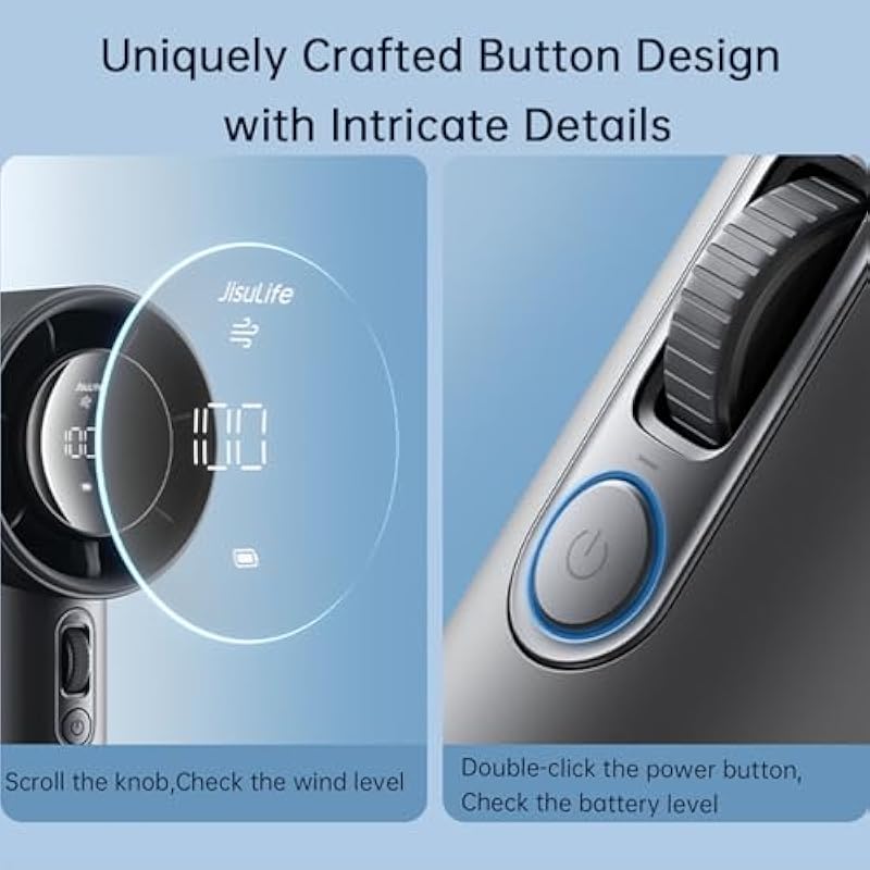 - Hundred-level Hurricane Technology: This JISULIFE handheld mini fan has a personalized design with 100 levels of wind speed, allowing you to adjust freely according to the usage scenario. The small handheld fan’s scroll switch makes it easier and smoother to change the wind speed.