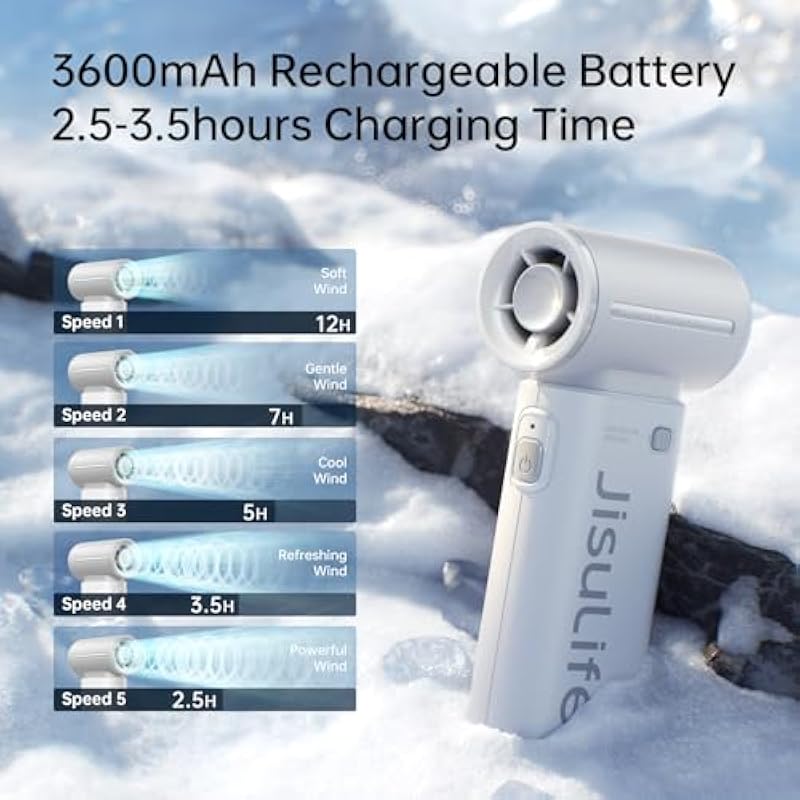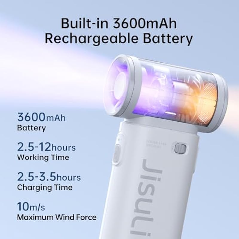 - Powerful Wind, Fast Cooling: JISULIFE powerful portable turbo fan adopts advanced 9-blade design, with high-speed three-phase brushless motor, providing a maximum wind speed of up to 10m/s. 40000 RPM, which is four times that of ordinary handheld fans, brings you a strong and stable wind experience