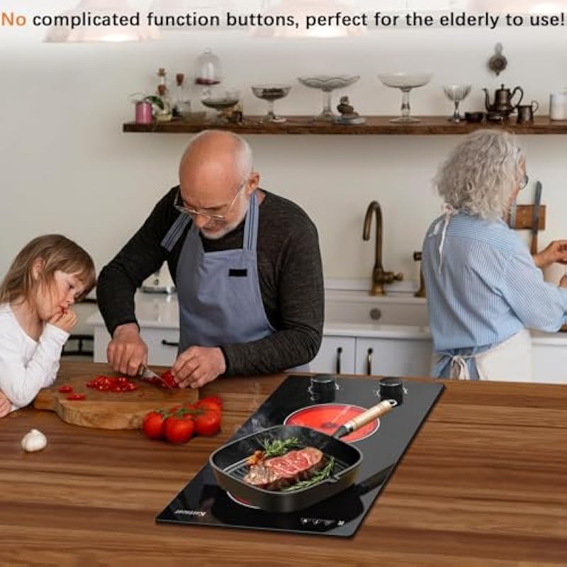 - 【User-Friendly and Efficient Heating】 Ideal for seniors, the knob control cooktop is straightforward and easy to master. Compatible with various cookware, including glass, ceramic, iron, and stainless steel, this glass electric cooktop is perfect for all your culinary needs. The glass surface is easy to clean, and the sleek design adds a modern touch to your kitchen.