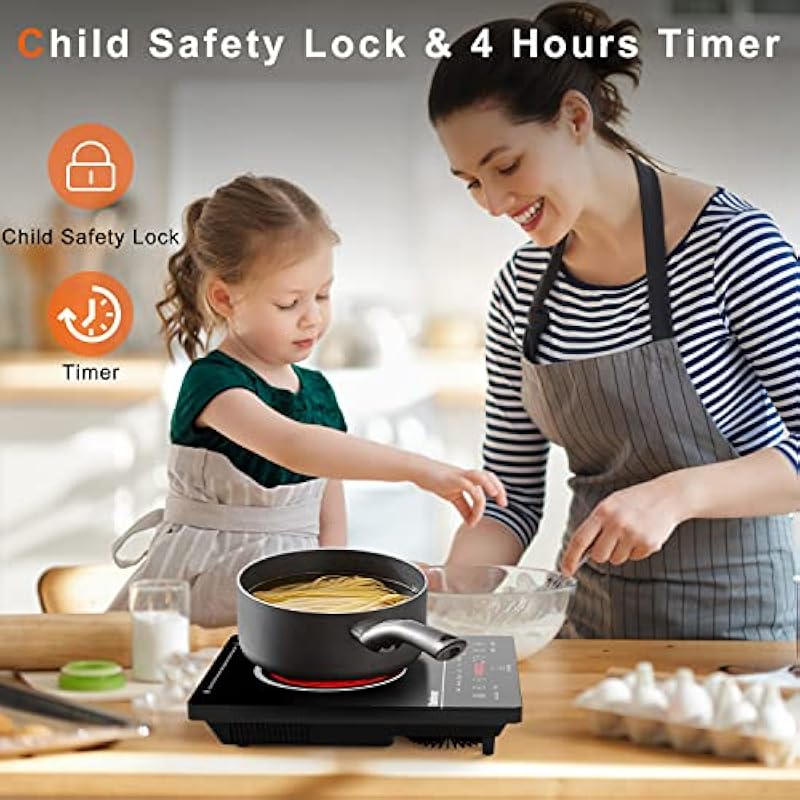 - 【Multi-function Electric Ceramic Cooktop】This 110 volt kitchen stove is equipped with various safety protection functions, such as timer, automatic shutdown, child safety lock, residual heat indicator, overheat protection, etc. Using this countertop stove can make your cooking more relaxed and pleasant without worrying about safety.