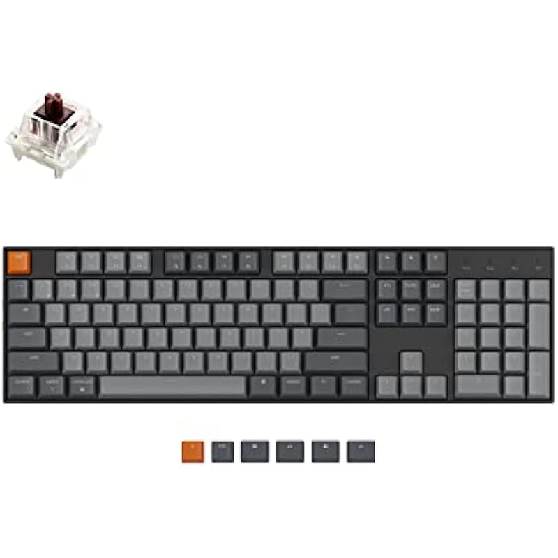 Keychron K10 Full Size 104 Keys Bluetooth Wireless Mechanical Gaming Keyboard for Mac Windows K Pro Brown Switch, Multitasking/White LED Backlight/USB C Wired Computer Keyboard