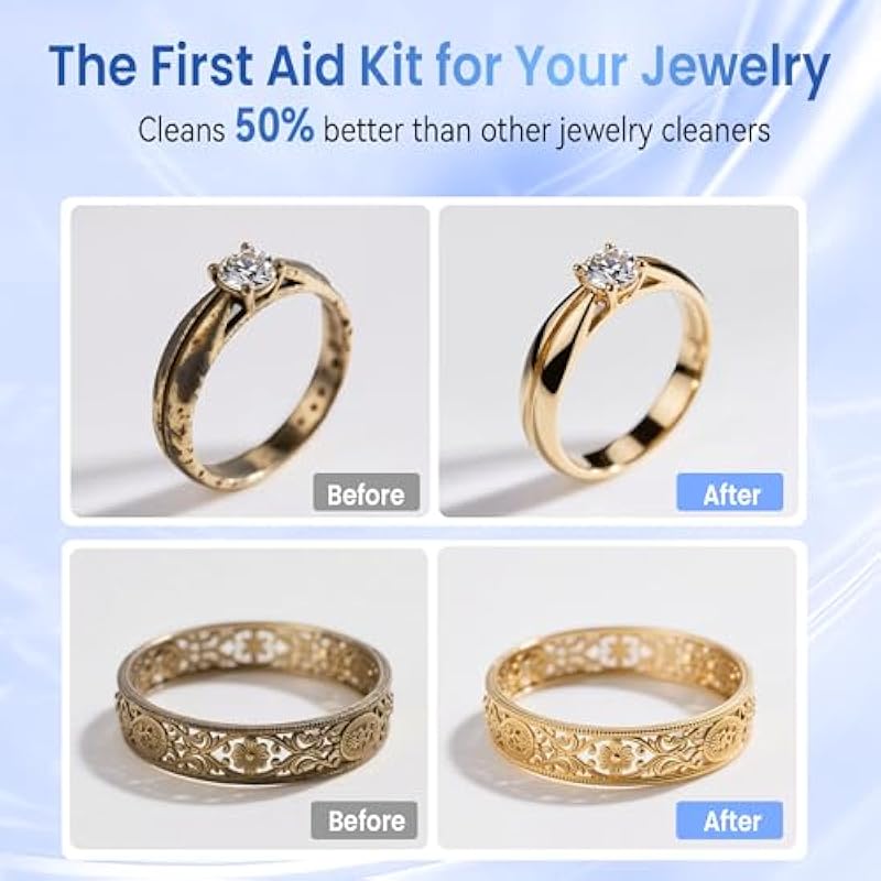 - BRING BACK THE SPARKLE: This gold jewelry cleaner provides deep yet safe cleaning for all jewelry and gold. Dirt, lotions, and other residues can settle into tiny crevices, dulling their shine. Our professional formula removes grime, and oils, restoring brilliance in minutes. From delicate rings to intricate necklaces, it works effortlessly for a sparkling finish!
