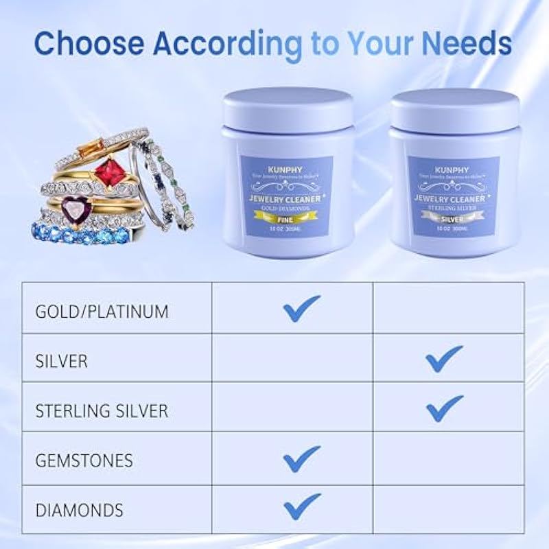 - EASY TO USE: No complicated steps required! Simply place your jewelry in the tray that comes with the diamond ring cleaner, soak for 30 seconds (or longer for heavily soiled pieces), gently brush with the included soft brush, rinse with warm water, then dry with the polishing cloth for a sparkling, like-new finish. This product is not suitable for silver jewelry. Please use kunphy silver jewelry cleaner products to meet your silver jewelry cleaning needs!