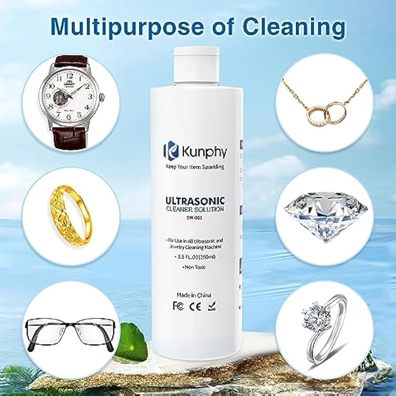kunphy Sonic Jewelry Cleaner – Effective Solution for Cleaning Gold, Silver, Platinum, Diamonds, and Eyeglasses Watch, 8.5 oz (2 packs)