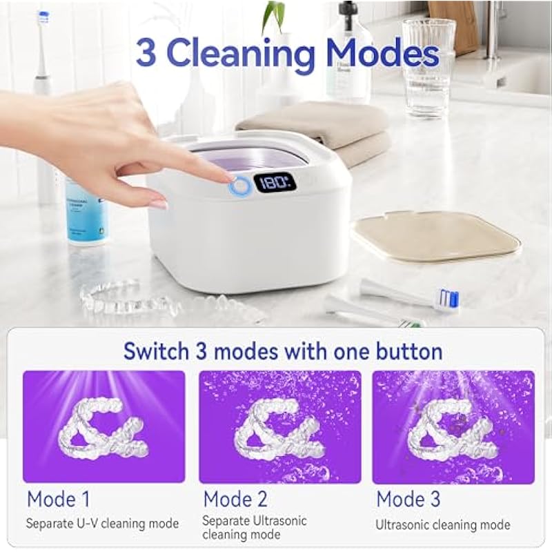 - [Wide Application] This sonic cleaner machine has a special waterproof coating ensuring durability while having a great tactile feeling. You can use it to clean stuff like jewelry, glasses, retainers, and ring