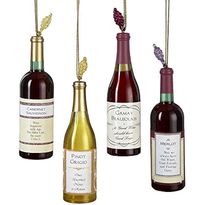 - These Kurt Adler Wine Bottle Ornaments are a charming addition to any Christmas tree or theme party decor. This set features 4 different bottles of wine each with a saying as well. Included are “Merlot May we always have Old Wine, Good Friends, and Fleeting Cares”, “Chardonnay Whine a bit every day and you’ll feel better”, “Pinot Noir May this wine Brighten the Mind and Strengthen the Spirit” and “Cabernet Sauvignon Wine improves with age. The Older I get the more I like it”