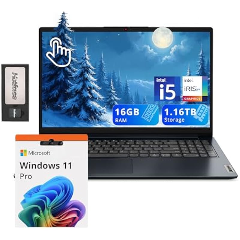 Lenovo IdeaPad 1i 15.6″ FHD Touchscreen Laptop, Intel i5 1235U, 16GB RAM, 1.16TB Storage(1TB SSD + 160GB Docking Station), Intel Iris Xe Graphics, HD Camera, Dolby Audio, Wi-Fi 6, Win 11 Pro, Blue