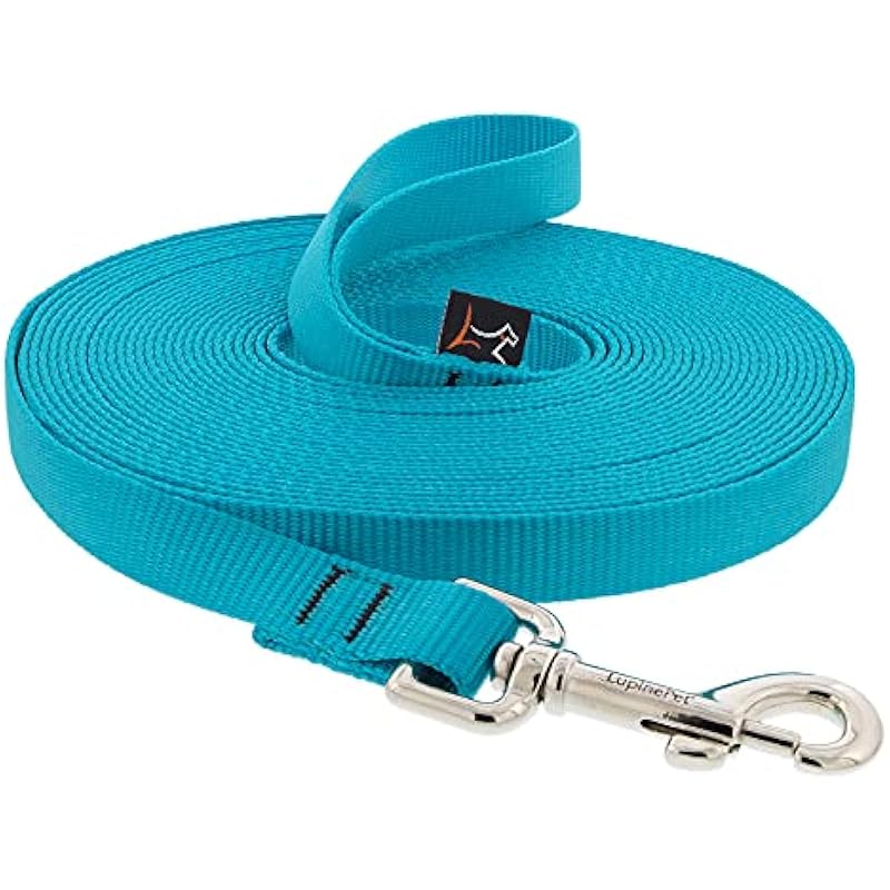 LupinePet Basics 3/4″ Aqua 30-Foot Extra-Long Training Leash for Dogs