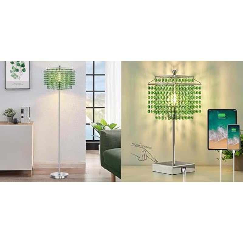 Luvkczc 1 Pack Crystal Floor Lamps+1 Pack Crystal Table Lamp, LED Bulb Included, Green lamp
