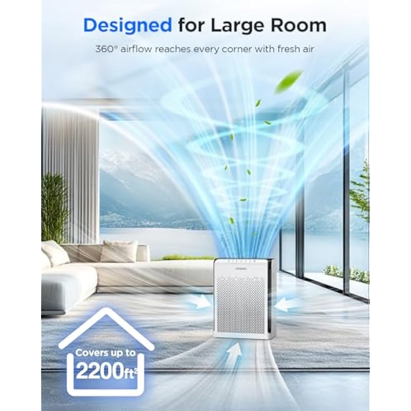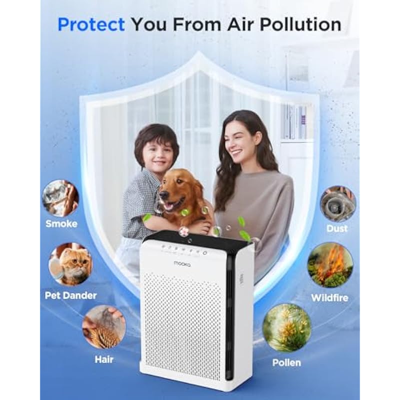- 3D AIR INTAKE & HIGH PERFORMANCE:This is the 2025 latest MOOKA M200L HEPA air purifiers for home large room. To maximize airflow for faster purification, our large room air purifier is designed with triple-sided air intake system and has a larger coverage area up to 2200 ft², that can effectively captures air pollutants such as pet hair, dander, smoke, and odors in spaces like bedrooms, offices, dorm rooms, and basements