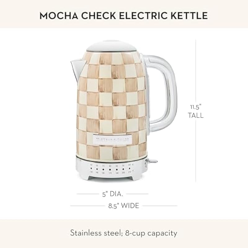 MACKENZIE-CHILDS Stainless-Steel Electric Kettle Bundle with Stainless-Steel 2-Slice Toaster, Brown-and-White Mocha Check