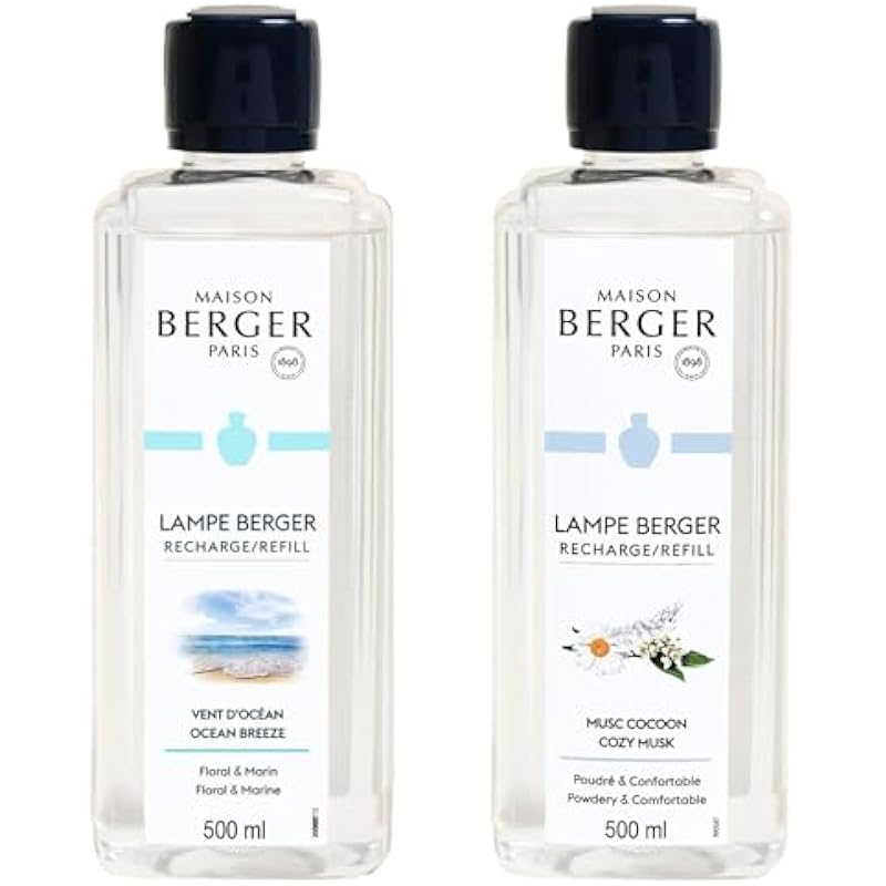 MAISON BERGER – Duo – Cosy Musk and Ocean Breeze – Lampe Berger Fragrance Refill for Home Fragrance Oil Diffuser – Air Freshener – 2 x 16.9 Fluid Ounces – 500 milliliters