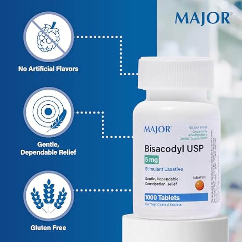 Major Bisacodyl 5 mg – Comfort Coated Stimulant Laxative for Gentle, Dependable, Constipation Relief – 1000 Tablets (1 Pack)