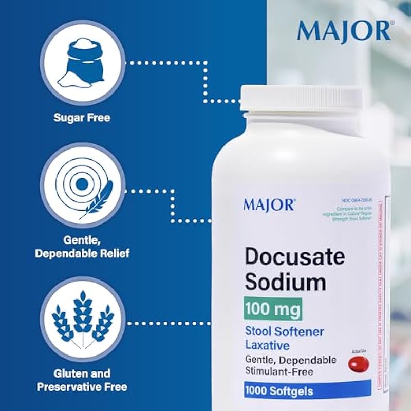 MAJOR Docusate Sodium 100 mg – Stool Softener Tablets for Constipation Relief – Helps Stop Constipation – Stool Softeners for Women, Men, and Kids Ages 12+ – 100 Tablets (3 Pack)