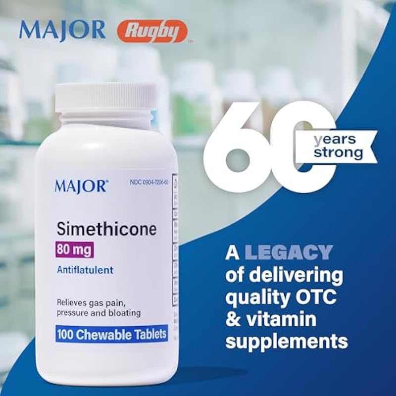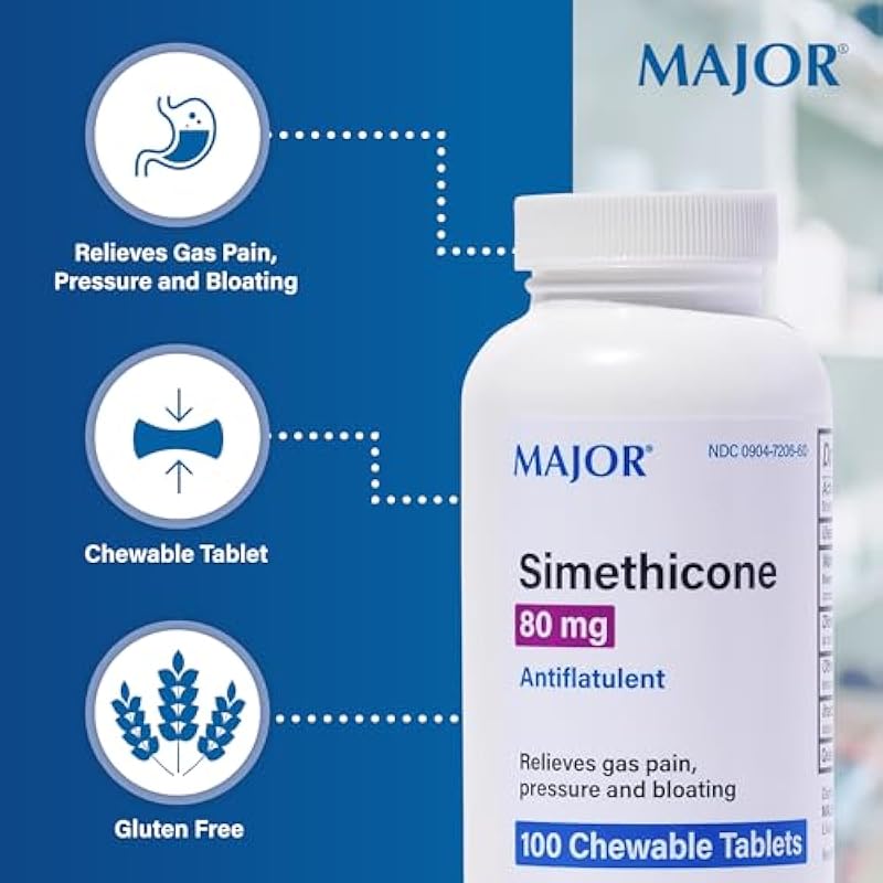 MAJOR Simethicone Gas Relief 80 mg – Anti Flatulence, Bloating and Gas Pressure Aid – 100 Chewable Tablets (1 Pack)