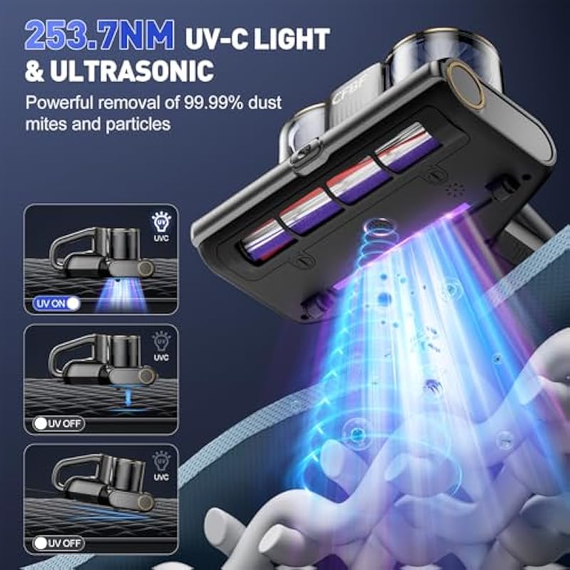 - ☑️【CONVENIENT & DURABLE】The uv vacuum cleaner comes with a 0.6L dust cup and an ultra-long 16.4FT power cord, allowing you to reduce the hassle of frequent dust dumps during the cleaning process, and easily cover multiple areas of the bedroom, living room, and other areas, making cleaning more flexible and efficient. Made with premium components and durable materials to provide you with an easier and longer cleaning experience, it is ideal for families with pets and children