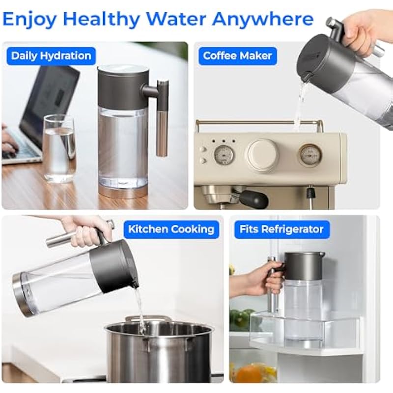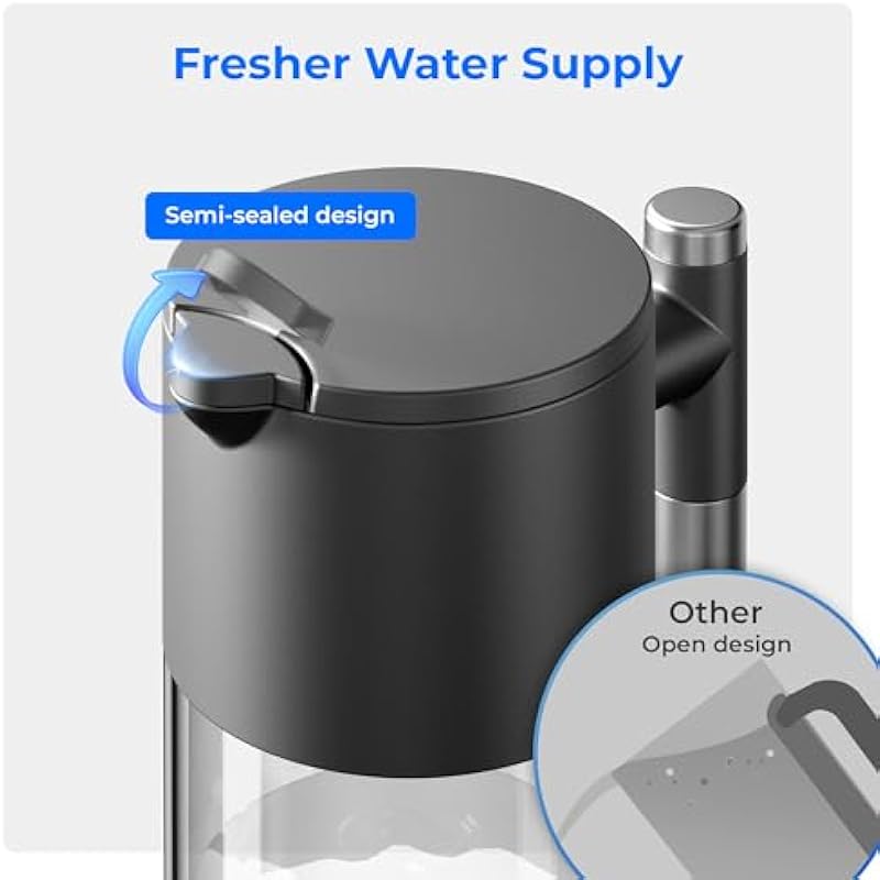 - 𝐀𝐮𝐭𝐨𝐦𝐚𝐭𝐢𝐜 𝐏𝐮𝐫𝐢𝐟𝐲: The portable pure water pitcher with an automatic refill feature, uses sensors to replenish water until it reaches the desired level—achieve effortless hydration