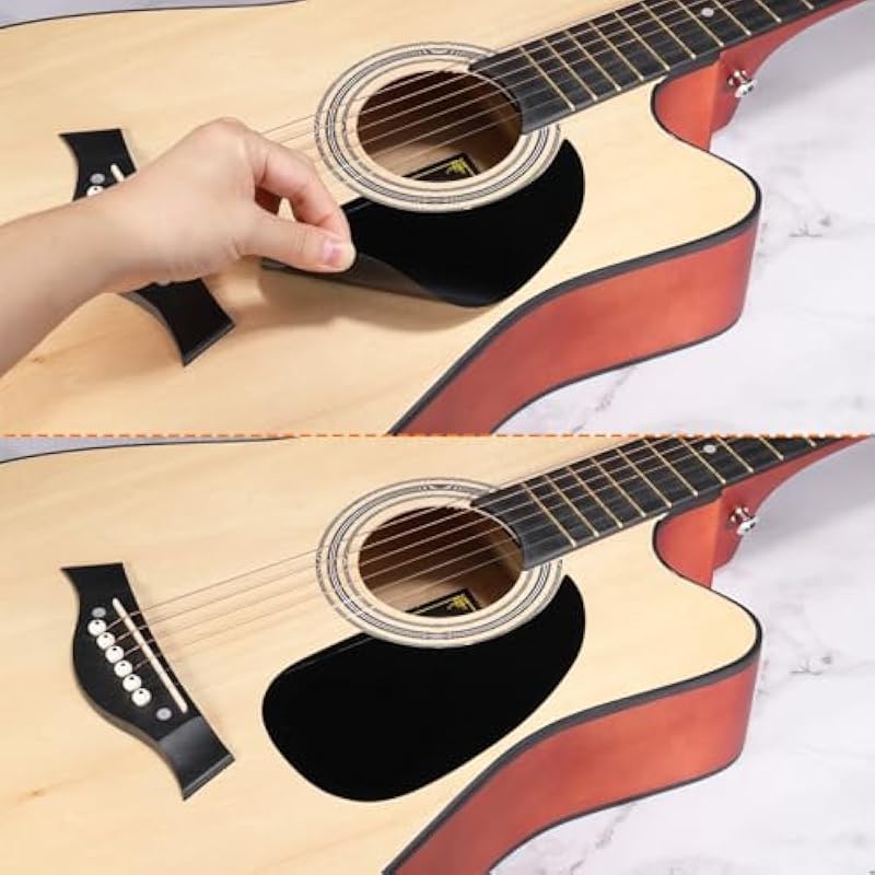 - Made from PVC, it is the perfect replacement Pickguard for acoustic guitars, a professional guitar protection board, that protects the surface of the guitar without affecting the sound.