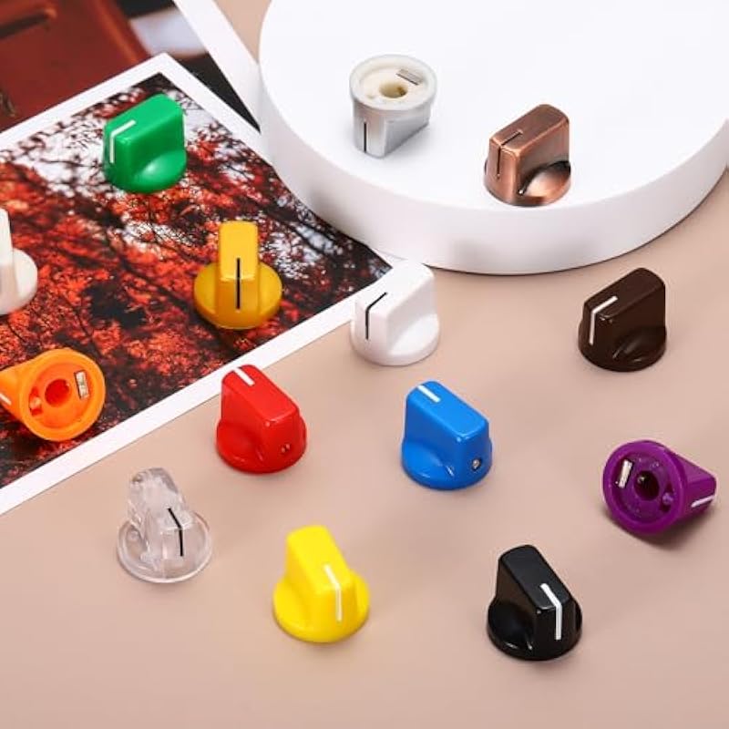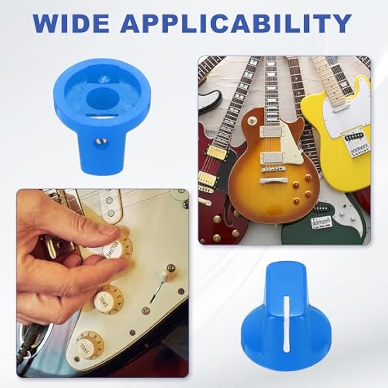 - This potentiometer knob is stylish and durable, designed for guitar amplifiers, effects and audio equipment. Widely used in guitar effect pedals, electric guitars, synthesizers, amplifiers, audio equipment, to control tone, volume, speed, sound, etc. It can fit tightly with standard potentiometers while adding a modern and beautiful look to your equipment.
