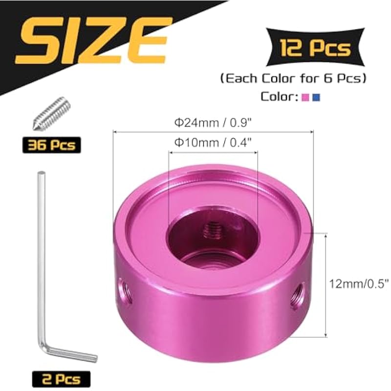 - Inner Diameter: 10 mm/0.4 inch; Outer Diameter: 24 mm/0.9 inch; Height: 12mm/0.5 inch; Material: Metal; Color: Blue, Red; In the package of: 12 Pcs x Footswitch Toppers