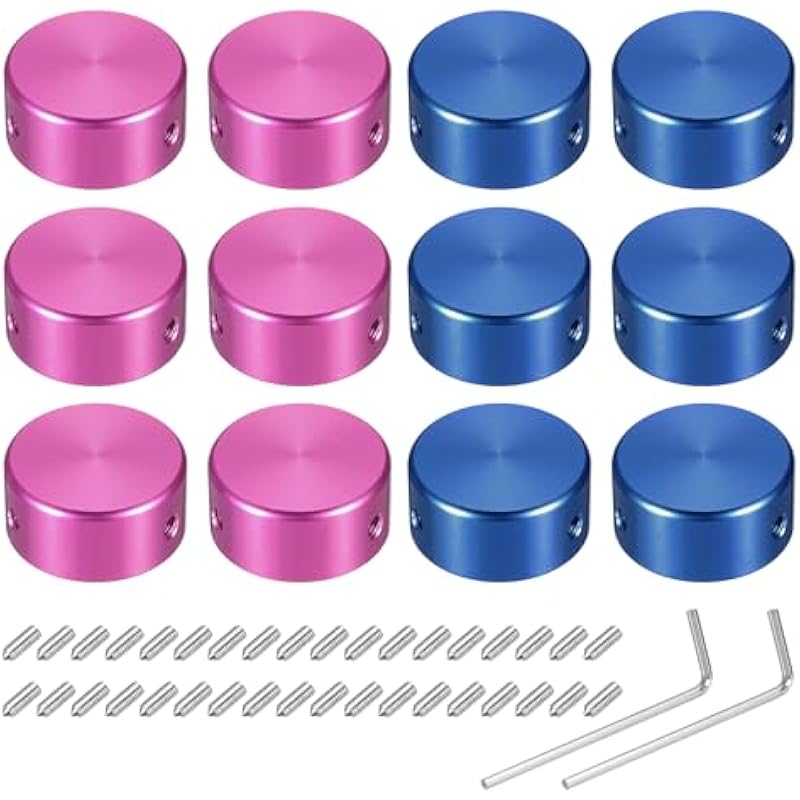 MECCANIXITY 12 Pcs Footswitch Toppers Guitar Pedal Button Caps Metal Footswitch Top Cover 3/8″ for Guitar Effects Pedal Buttons, Blue, Red