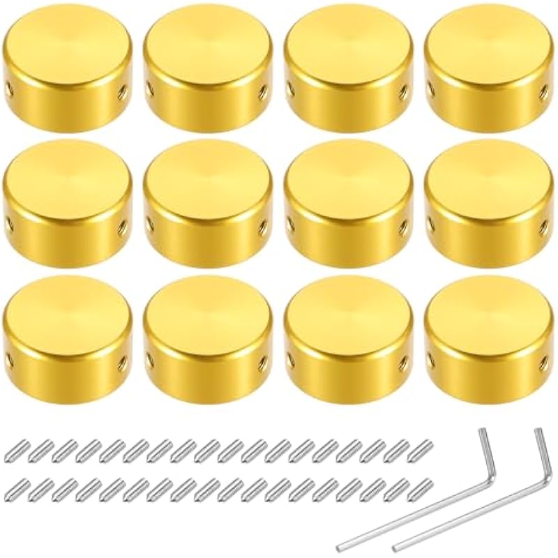 MECCANIXITY 12 Pcs Footswitch Toppers Guitar Pedal Button Caps Metal Footswitch Top Cover 3/8″ for Guitar Effects Pedal Buttons, Gold